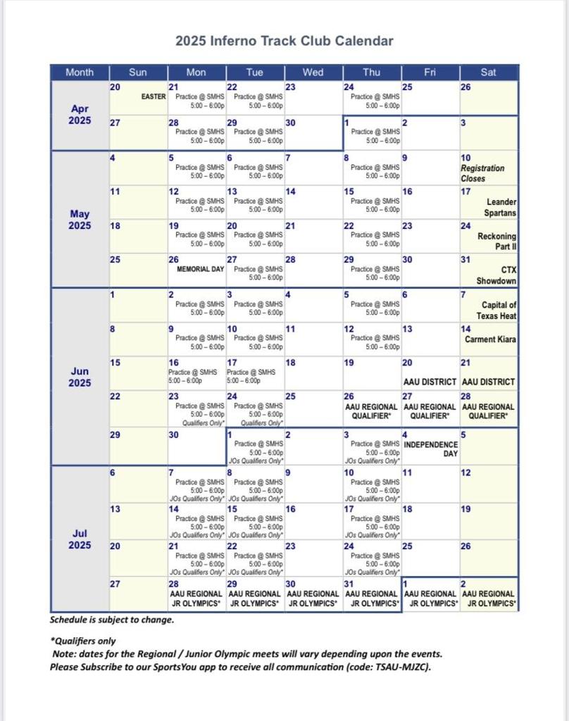 We are excited to partner with SMCISD Coaches for our Summer Track Club! Track is open to boys and girls ages 10-18, all areas are welcome to participate.